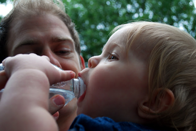 Well, of course my other favorite baby. She was trying to share water with Daddy.